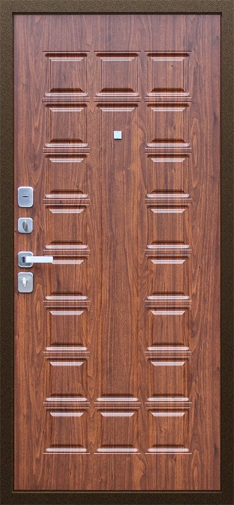 Надежная входная Дверь Спартак Орех темный премиум класса по цене 36 308 руб. Большая толщина стали защитит от проникновения в ваш дом, квартиру или коттедж. Используется очень качественная фурнитура: замки, цилиндры, ручки, защелки. Покрытие и отделка двери изготовлено под внимательным контролем производителя. Дверь имеет долгий срок службы и гарантию.