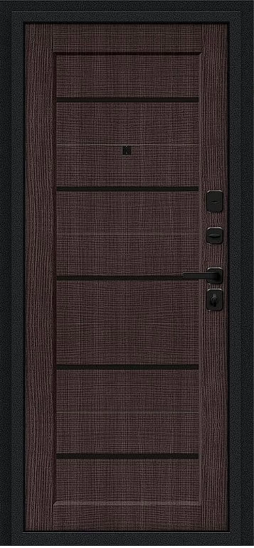 Надежная входная Дверь Браво Борн/SBlack Букле черное/Wenge Melinga премиум класса по цене 35 708 руб. Большая толщина стали защитит от проникновения в ваш дом, квартиру или коттедж. Используется очень качественная фурнитура: замки, цилиндры, ручки, защелки. Покрытие и отделка двери изготовлено под внимательным контролем производителя. Дверь имеет долгий срок службы и гарантию.