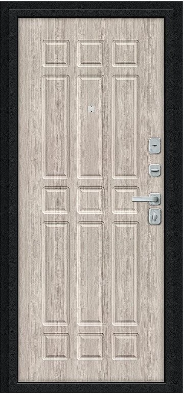 Надежная входная Дверь Браво Мило МФ/BChrome Букле черное/Cappuccino Melinga премиум класса по цене 35 608 руб. Большая толщина стали защитит от проникновения в ваш дом, квартиру или коттедж. Используется очень качественная фурнитура: замки, цилиндры, ручки, защелки. Покрытие и отделка двери изготовлено под внимательным контролем производителя. Дверь имеет долгий срок службы и гарантию.