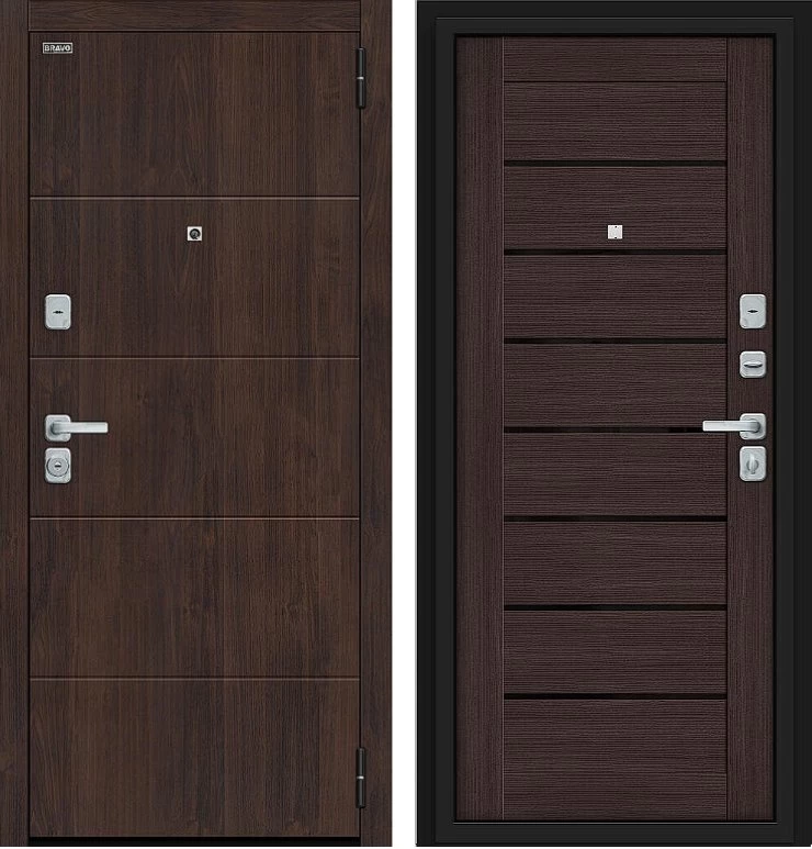 Надежная входная Дверь Браво Прайм/BChrome Almon/Wenge Melinga премиум класса по цене 42 108 руб. Большая толщина стали защитит от проникновения в ваш дом, квартиру или коттедж. Используется очень качественная фурнитура: замки, цилиндры, ручки, защелки. Покрытие и отделка двери изготовлено под внимательным контролем производителя. Дверь имеет долгий срок службы и гарантию.